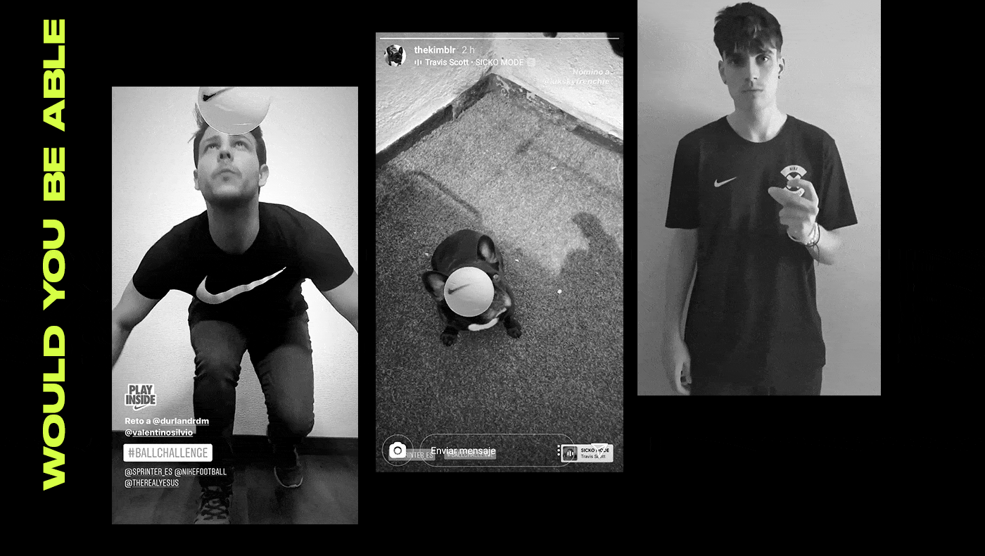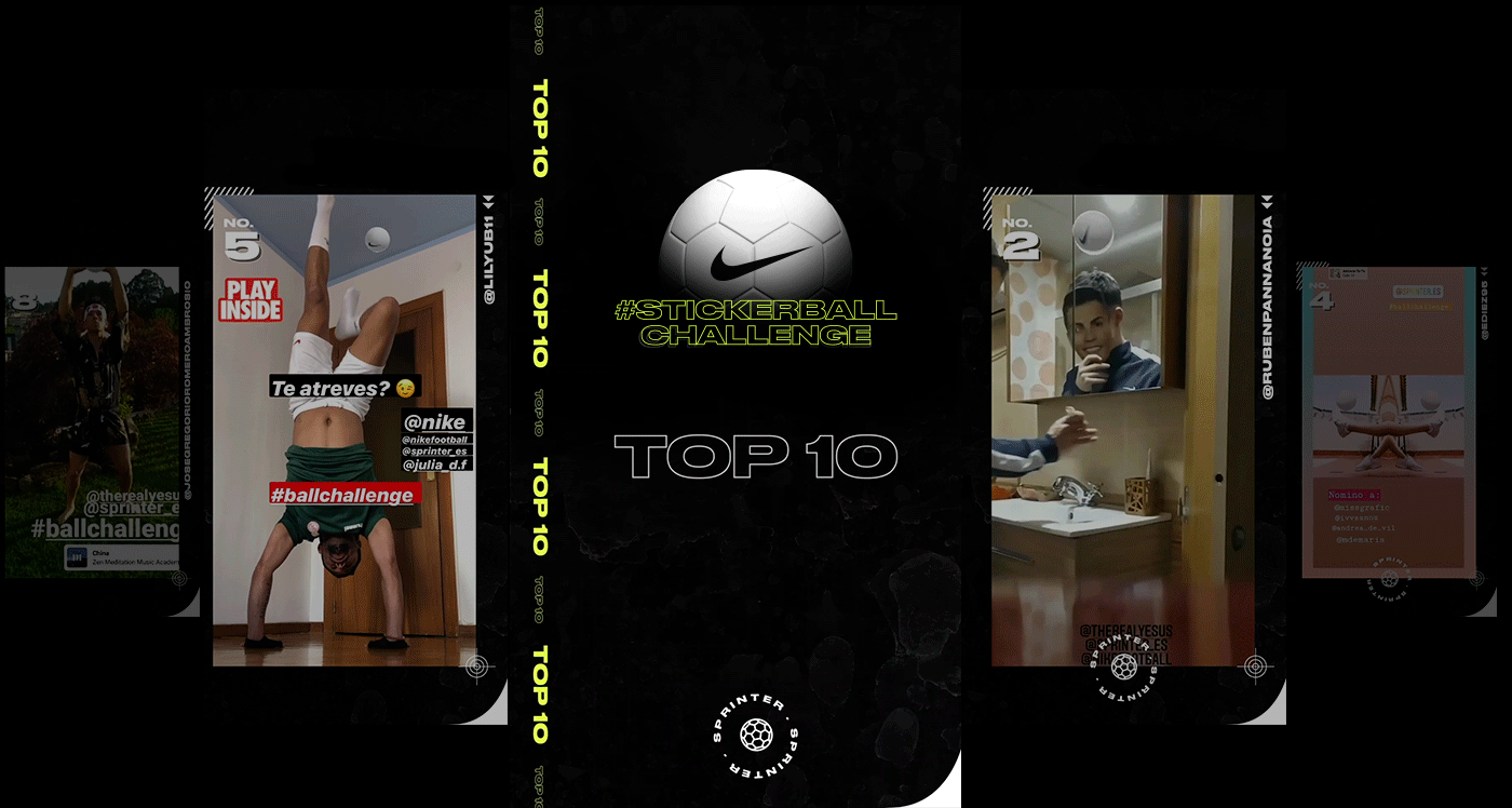 The first challenge where you have to dribble a sticker. Launched by Nike & Sprinter to keep people safe at home during the pandemic under the global campaign "Play Inside, Play for the World".